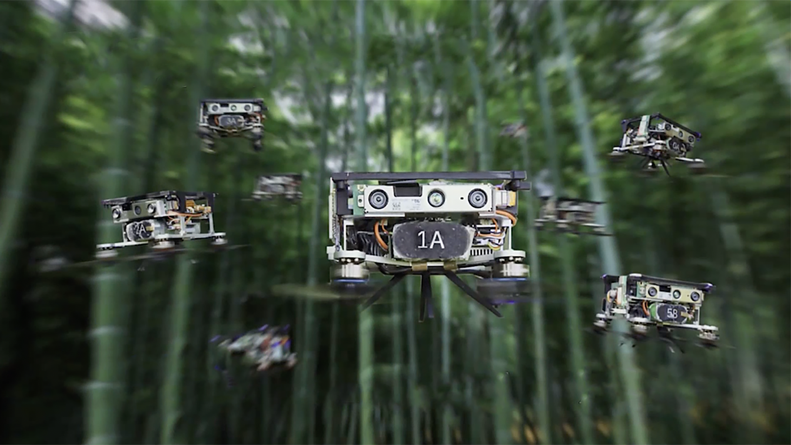 By arming each drone with its own sensors, researchers have created the first swarm capable of navigating a wide environment.
