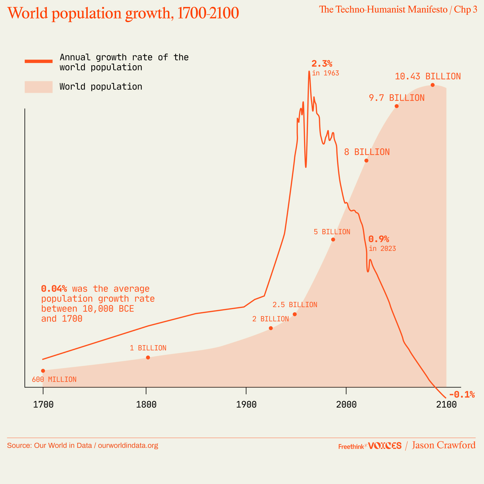Thus we need a corrective not only to anti-humanism, but to anti-natalism and fears of overpopulation. Those fears were stoked in the 1960s, when the world population growth rate climbed to 2.3% per year while over 1.6 billion people were still living in extreme poverty.26 In 1968, Paul and Anne Ehrlich published The Population Bomb, which warned that “[i]n the 1970s… hundreds of millions of people are going to starve to death in spite of any crash programs embarked upon now.”27 The Ehrlichs said that population control should be achieved by compulsion if necessary, and supported coercive sterilization in India.28