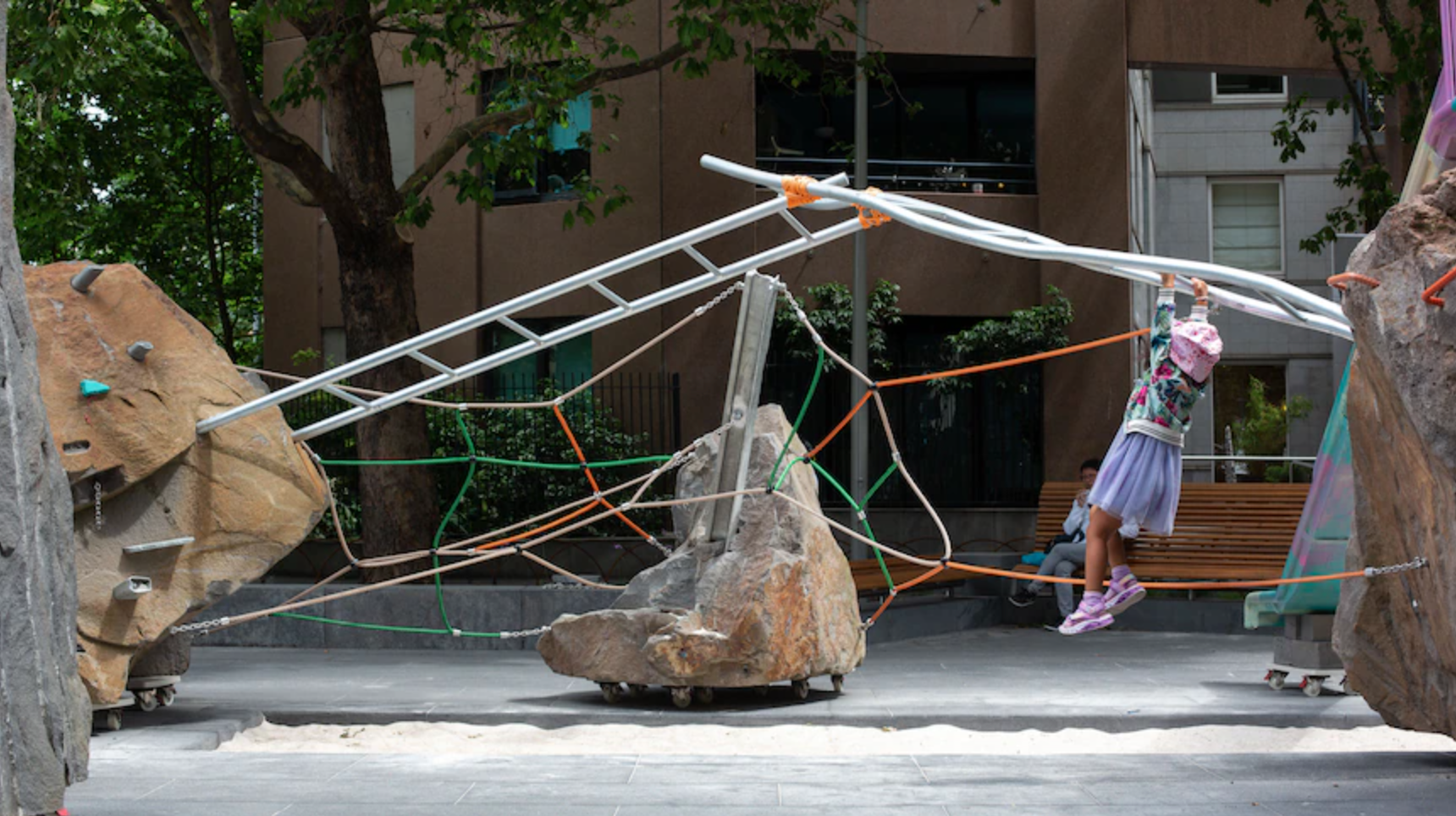 A new playground in Melbourne’s Southbank is the work of artist Mike Hewson, who introduces "risk" back into play.